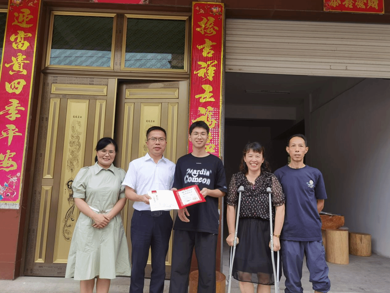 7月29日上午,快猫 院长蔡福满前往丽水市莲都区,化身“邮差”亲自将2023年第一份录取通知书送到学生舒斌凯手中,学院社区教研室主任李菊芳陪同。
