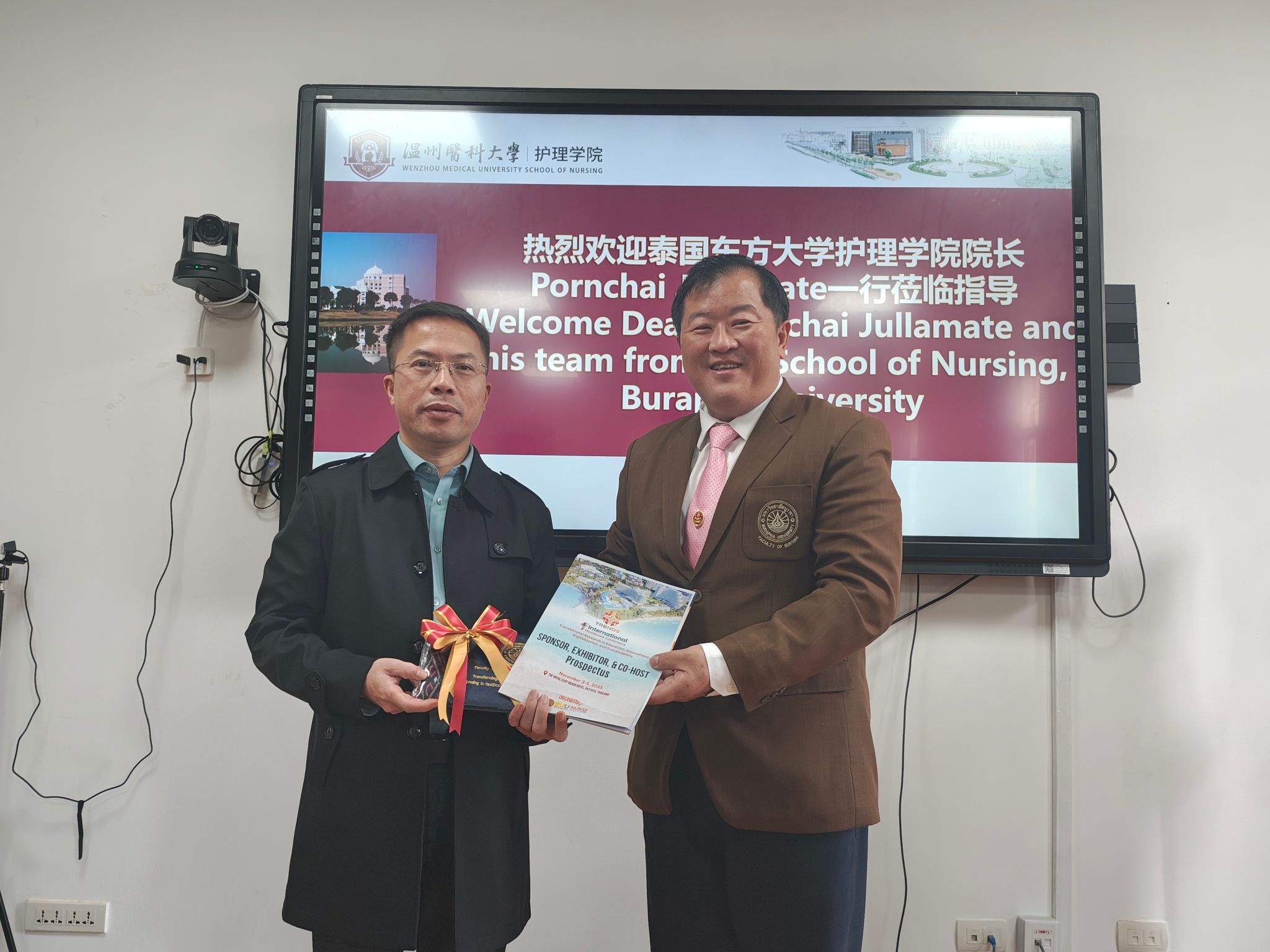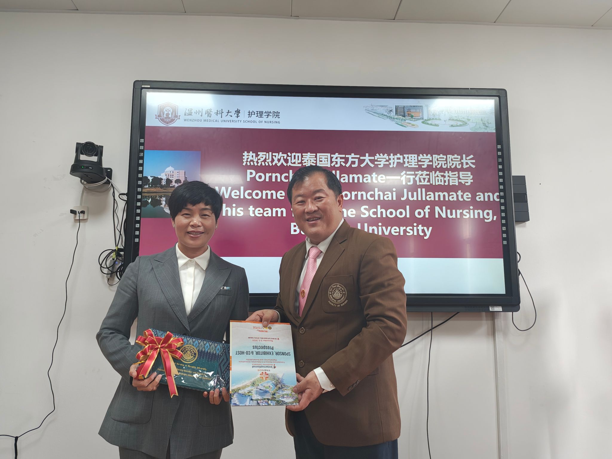 会议尾声,Pornchai Jullamate院长向快猫 领导赠送了泰国特色礼品,以此表达对双方友谊与合作的珍视。此次会议的成功举办,不仅展示了快猫 与泰国东方大学快猫 在博士合作上的积极态度与坚定决心,也为中泰护理教育的合作与发展注入了新的活力与动力。双方将携手并进,共同书写中泰教育合作的新篇章。