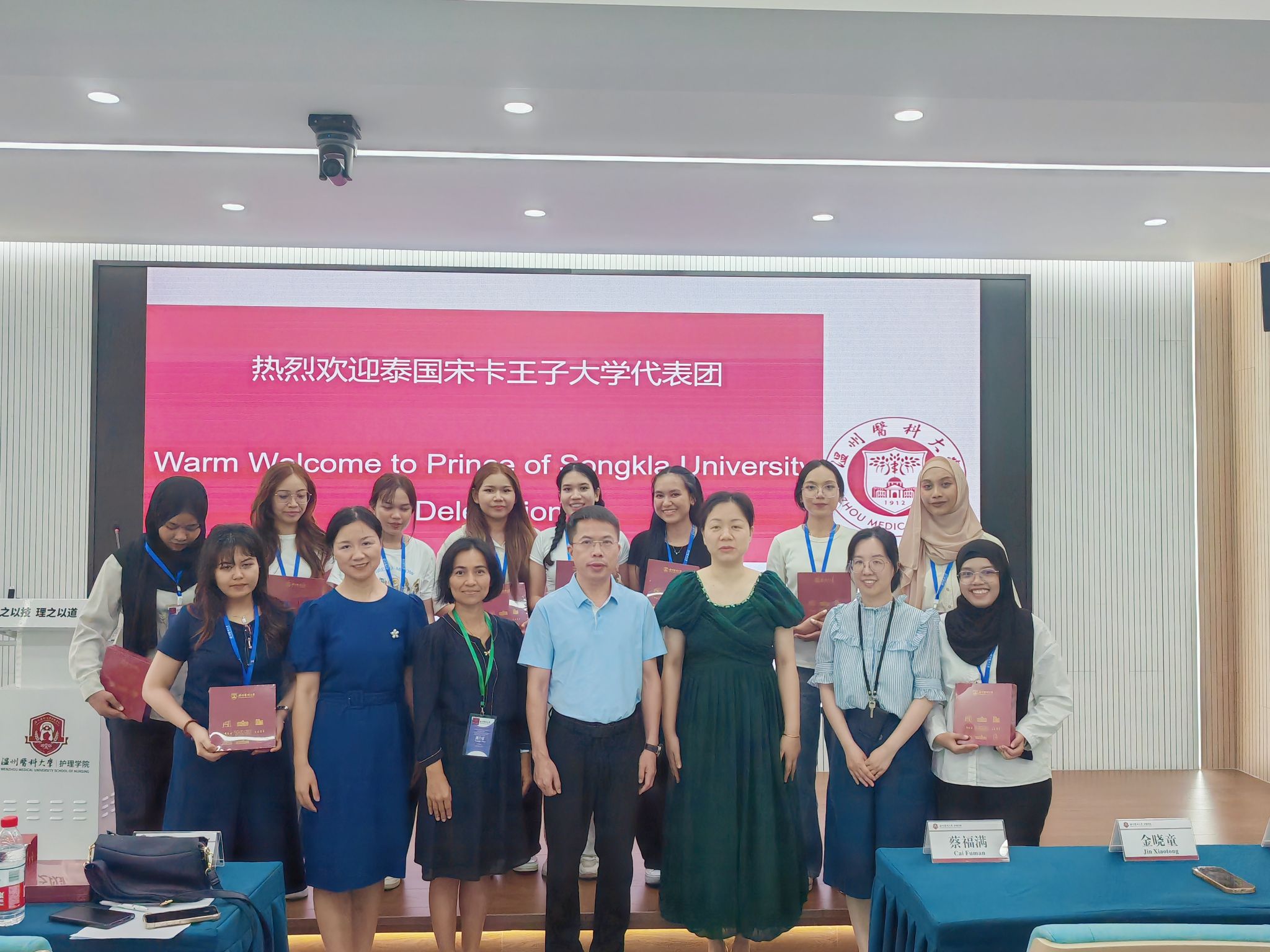 快猫 院长蔡福满、党委副书记金晓童、副院长董超群以及学院教师及教学办出席欢迎仪式。蔡福满院长对泰国宋卡王子大学师生的到来表示热烈欢迎,并介绍学院在学科建设、人才培养、科研创新等方面的情况。他指出,此次交流是两校合作的重要里程碑,期待双方以此为契机,通过资源共享、联合培养、文化互鉴,共同构建国际化护理人才培养体系,为全球健康治理输送兼具专业素养与跨文化沟通能力的护理人才。学院领导分别向代表团赠送纪念品。双方就联合申报国际科研课题、开发跨国护理实训课程等深化合作的具体方向进行了富有成效的探讨,推动学术合作向纵深发展。