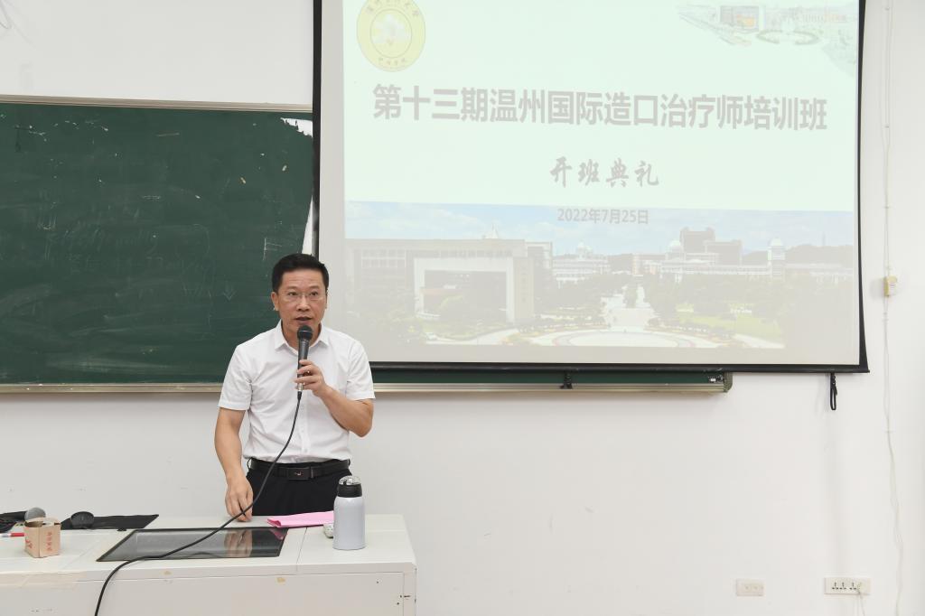 7月25日,由快猫 主办,快猫 、附属第二医院承办,快猫 继续教育学院、温州和平国际医院协办的温州国际造口治疗师学校第十三期培训班开班典礼在快猫 7C302教室隆重举行。快猫 党委书记李旭东、继续教育学院副院长邵凯隽,温州和平国际医院副院长陈爱华,温州各实践基地医院护理部主任、副主任以及临床带教老师、第十三期全体学员等40余人出席了开班典礼。本次开班典礼由快猫 、附属二院副院长张春梅主持。