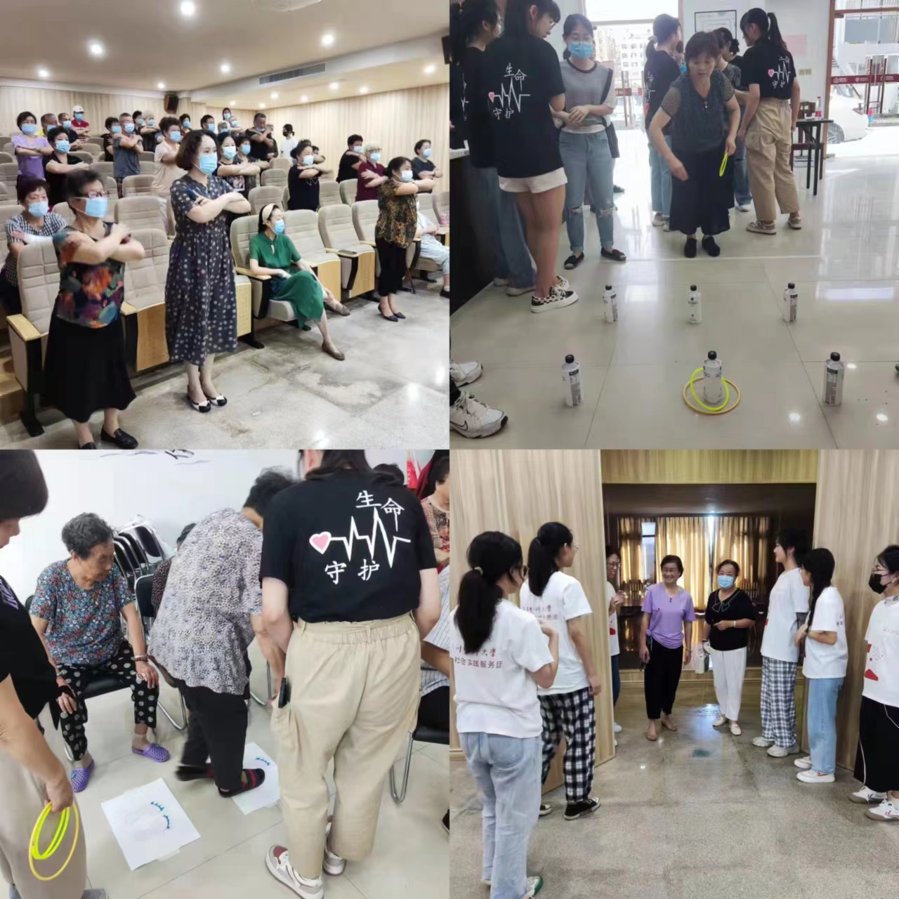实践团注意到到跌倒是危害老人健康的一大因素,先后抵达“银龄之家”和“金色小镇”开展“健康与平衡”宣教。向当地的老人科普跌倒的危害以及预防跌倒的方式。宣教对象累计百余人,在场老人积极配合。在宣教的同时,我们发现了老人们关怀陪伴、老年人“慢病”宣教方面的需求。