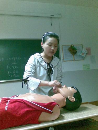当你面临溺水事件、交通事故、突发的疾病等情况而自己却束手无策的时候,你的内心是否受到震荡呢?大学生、尤其是对于医学生来说,普及急救知识、掌握急救技能是非常重要的。但是医学院中除了高年级的同学已经学习并掌握急救以外大部分同学对如何进行急救都还是“门外汉”。因此培训对于同学们显得格外重要。心肺复苏、止血、包扎、固定、搬运等基本急救知识成了本次授课的主要内容。“做心肺复苏时要将抢救者的气道充分地打开,看我的动作……”“碰到骨折的病人尽量不要搬动病人,等急救车来了再搬动,我们可以先用身边的布料将骨折部位固定,不要让病人出血过多……”学姐们一边讲着一边给我们示范着各种急救动作,志愿者如获真知般地认真地学习着,演练着……