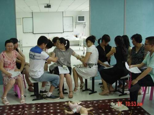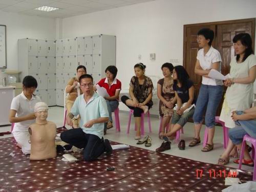 5月中旬,快猫 蔡福满老师受浙江省红十字会委派赴北京接受全国红十字总会的救护师培训,取得救护师资格。目前,温州市卫生系统仅只有2人,蔡老师是其中之一。蔡老师返校后立即举行学院的师资培训,普及救护知识。我校拟在机动车驾驶员、电力、建筑、机场等高危行业和人群中开展救护培训,普及初级卫生救护知识和技能,提高群众的自救互救能力,减轻、减少突发事件伤残伤亡的发生率。